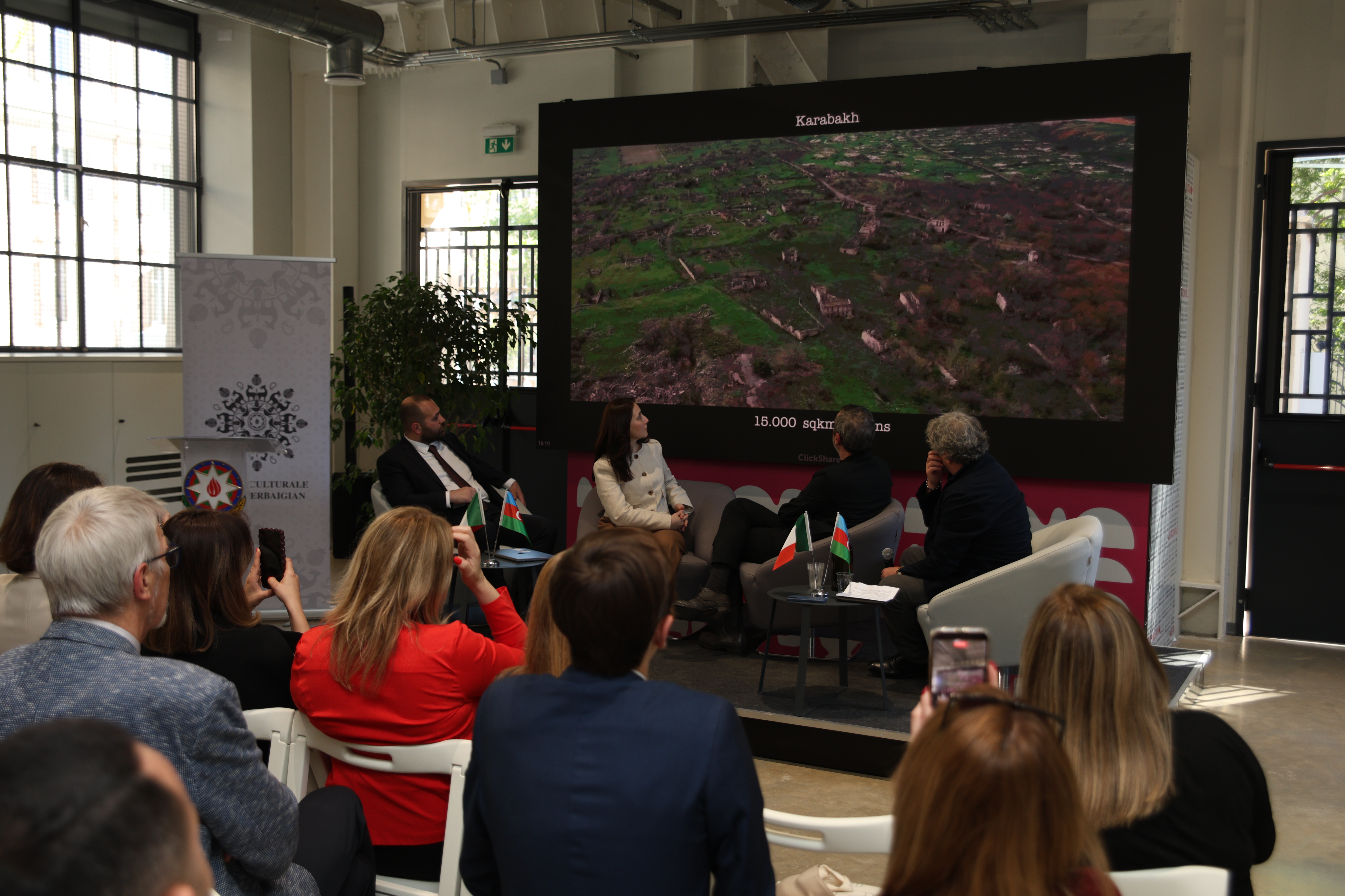 Il professor Spita ha offerto una prospettiva unica sulle caratteristiche urbane dell'Azerbaigian, in particolare sull'evoluzione della capitale nelle diverse fasi storiche, mentre Fabrizio Conti, che collabora da molti anni con l'Azerbaigian, ha parlato della sua vasta esperienza nella ricostruzione di Garabagh dopo la liberazione dei territori occupati e ha mostrato un video sul Sistema museale di Garabagh.