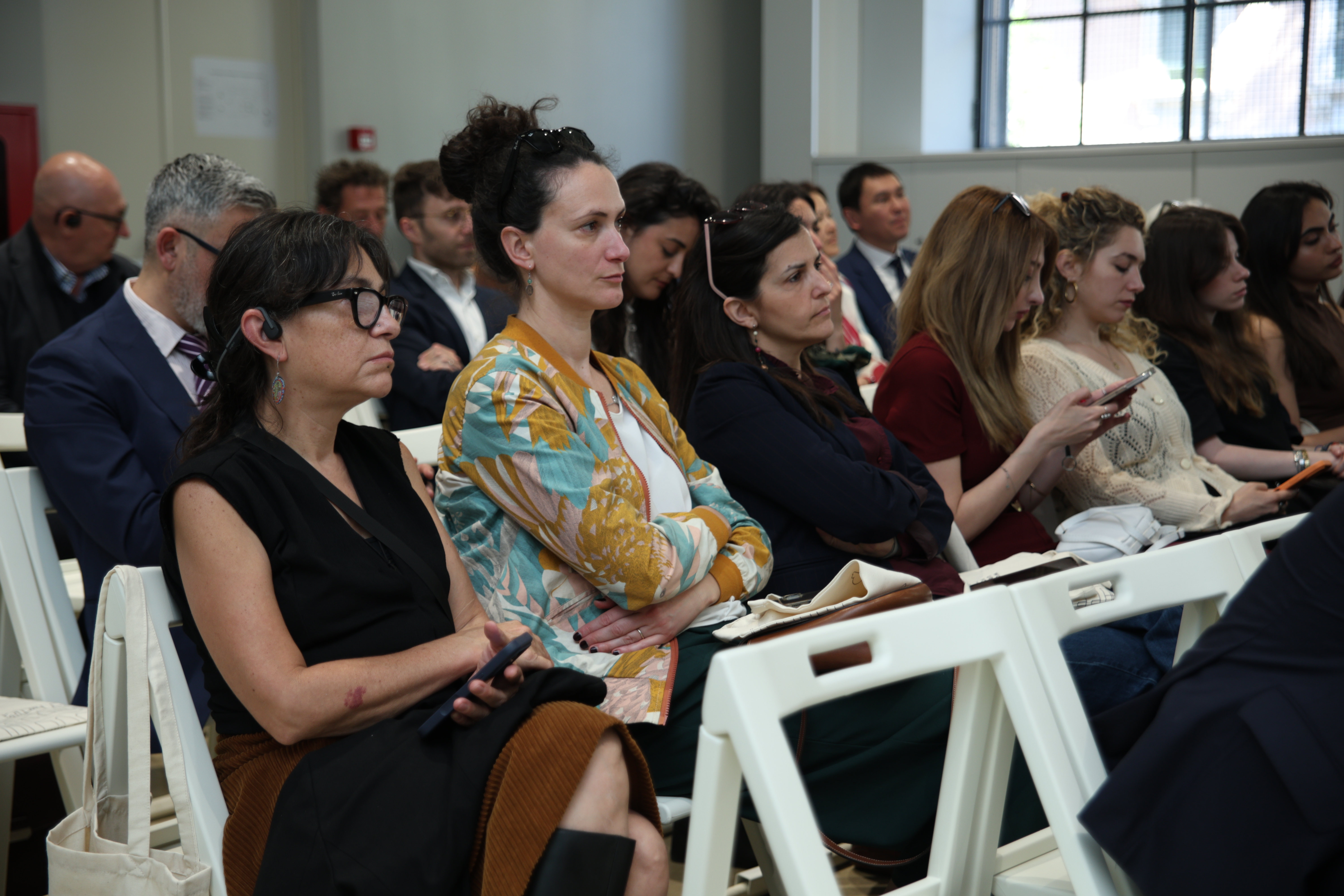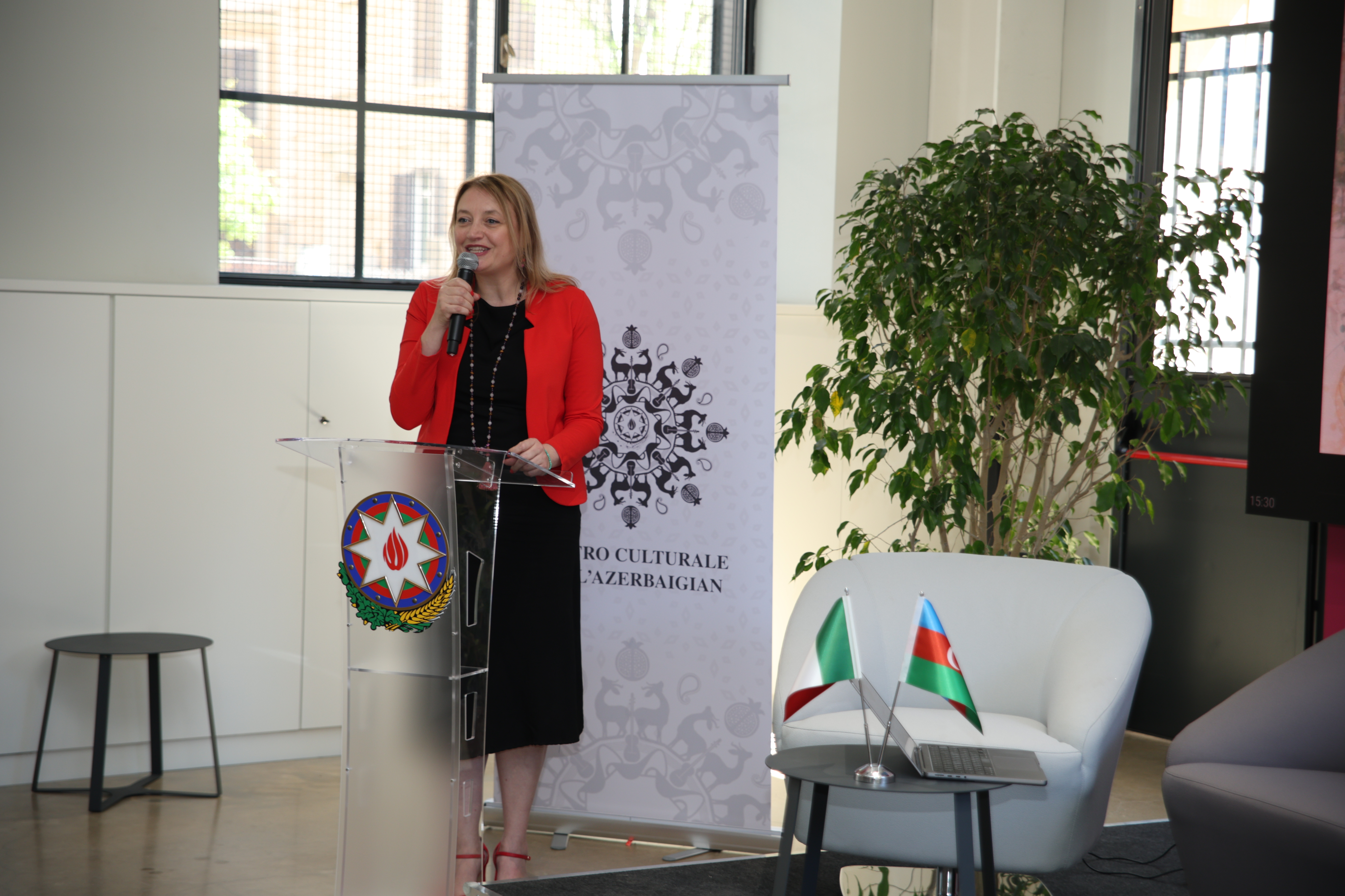 Successivamente, Nigar Gurbanova Ramazanli, diplomatica responsabile degli affari culturali presso l'Ambasciata dell'Azerbaigian in Italia, ha preso la parola, osservando che quest'anno, con la proclamazione dell'"Anno dell'Urbanistica e dell'Architettura" nel nostro Paese, si è creata una piattaforma unica per celebrare i risultati raggiunti in ambito architettonico, affrontare le sfide moderne e collaborare a soluzioni innovative applicabili a tutte le città, e che è nostro dovere morale preservare appieno l'architettura come patrimonio per le generazioni future.