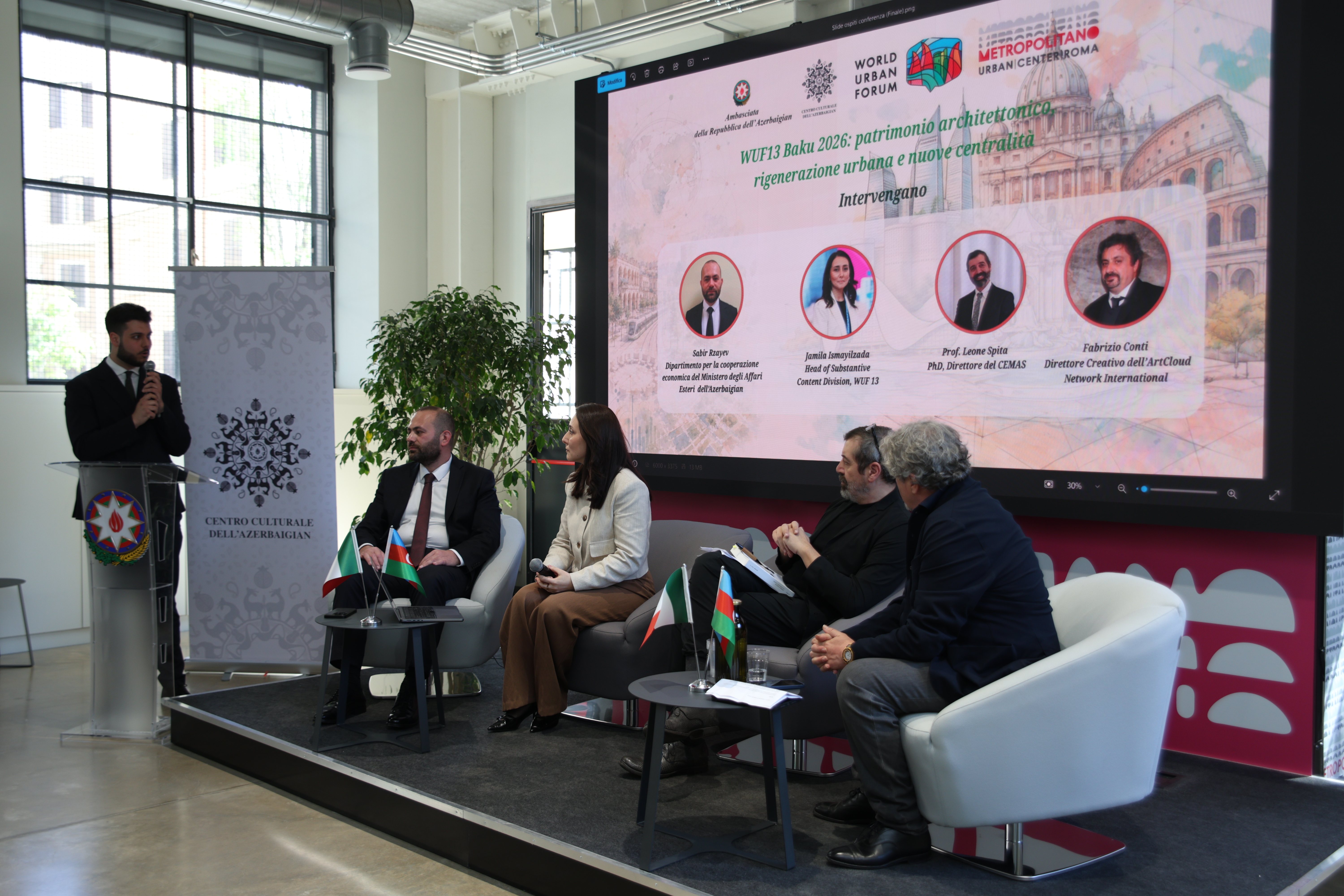 Il 28 aprile 2026, con il supporto dell'Ambasciata della Repubblica dell'Azerbaigian nella Repubblica Italiana, il Centro Culturale dell'Azerbaigian a Roma ha organizzato la conferenza dal titolo "WUF13 Baku 2026: Patrimonio Architettonico, Rigenerazione Urbana e Nuovi Centralità" presso il Centro Metropolitano Urbano Roma. Alla conferenza ha partecipato un pubblico specializzato, tra cui rappresentanti del corpo diplomatico, accademico e dei media.
